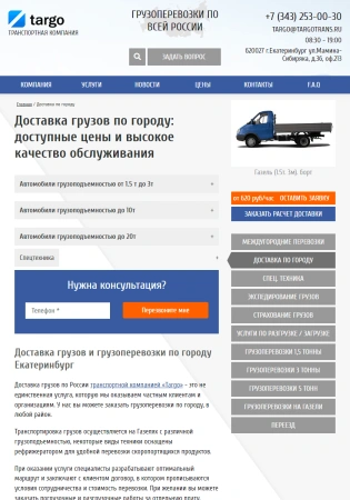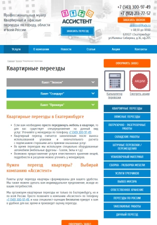 Сайт услуг транспортной компании "Pereezd-EK"